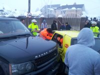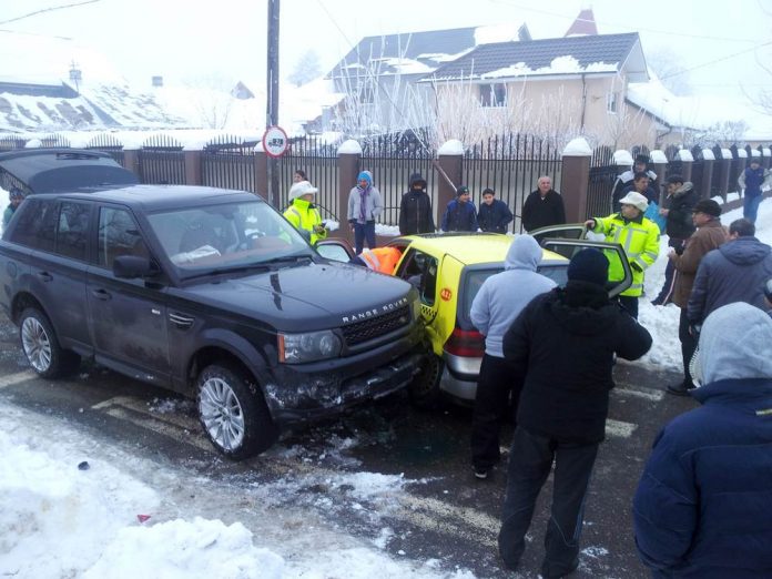 Politistii spun ca taximetristul nu a a cordat prioritate la intrarea in intersectie si a intrat in coliziune cu un Matiz, dupa care a ricosat in range Rover.