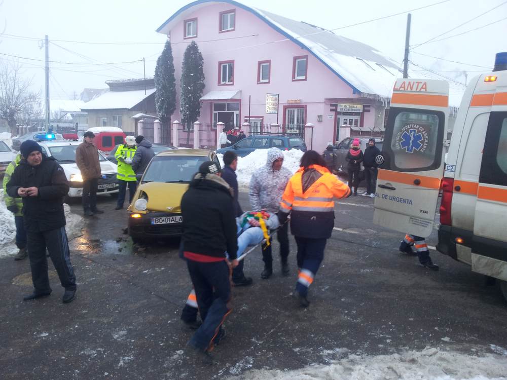 Doua persoane – mama si copil- au ajuns in aceasta dupa-amiaza la SPitalul Judetean de Urgente Bacau dupa ce taxiul in care se aflau a fost implicat intr-un accident la intersectia strazilor Vasile Parvan si Tudor Vladimirescu, din cartierul CFR.
