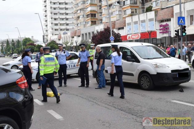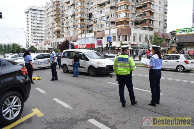 Polițiștii spun că șoferul, din Iași, nu a respectat culoarea roșie a semaforului și s-a ales cu dosar penal pentru vătămare corporală din culpă.
