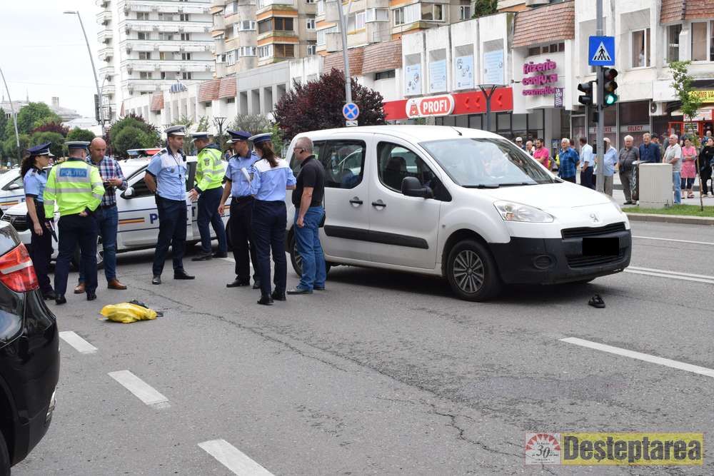 Doua persoane au fost lovite de un autoturism, luni dimineață, în timp ce traversau regulamentar pe trecerea de pietoni din zona centrală a Bacăului, în dreptul magazinului Luceafărul.