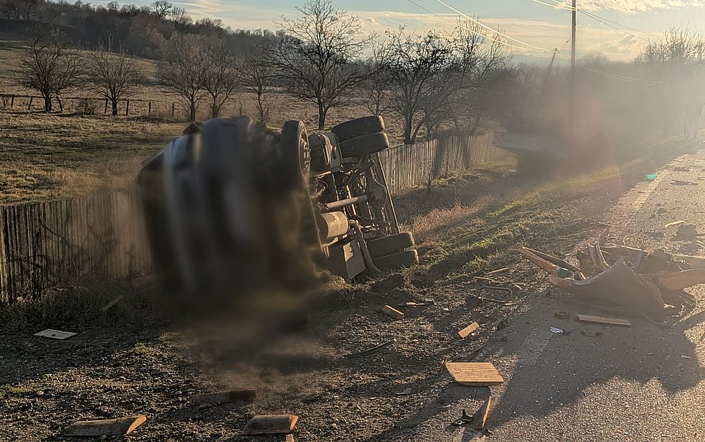 Traficul în zonă se desfășoară momentan pe un singur sens, fiind dirijat de un echipaj IPJ prezent la fața locului.