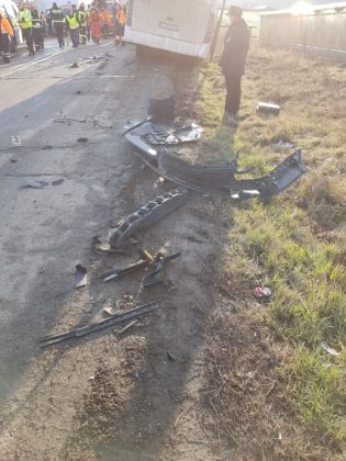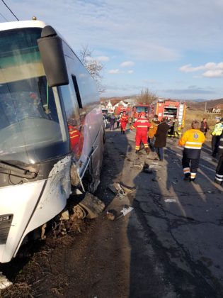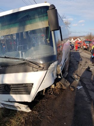 În autobuz se aflau 27 de persoane. În urma accidentului, şoferul autoturismului, care era singur, a rămas încarcerat şi a fost nevoie de intervenţia pompierilor militari pentru a fi scos dintre fiarele contorsionate.