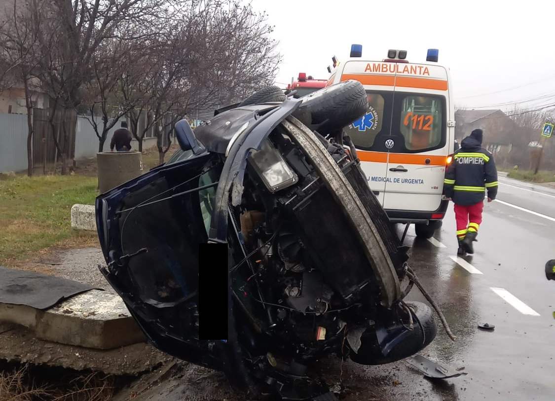 La sosirea forțelor de intervenție, victima se autoevacuase din autoturism, fiind conștientă.
