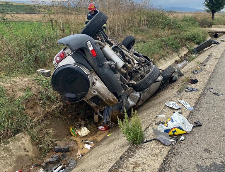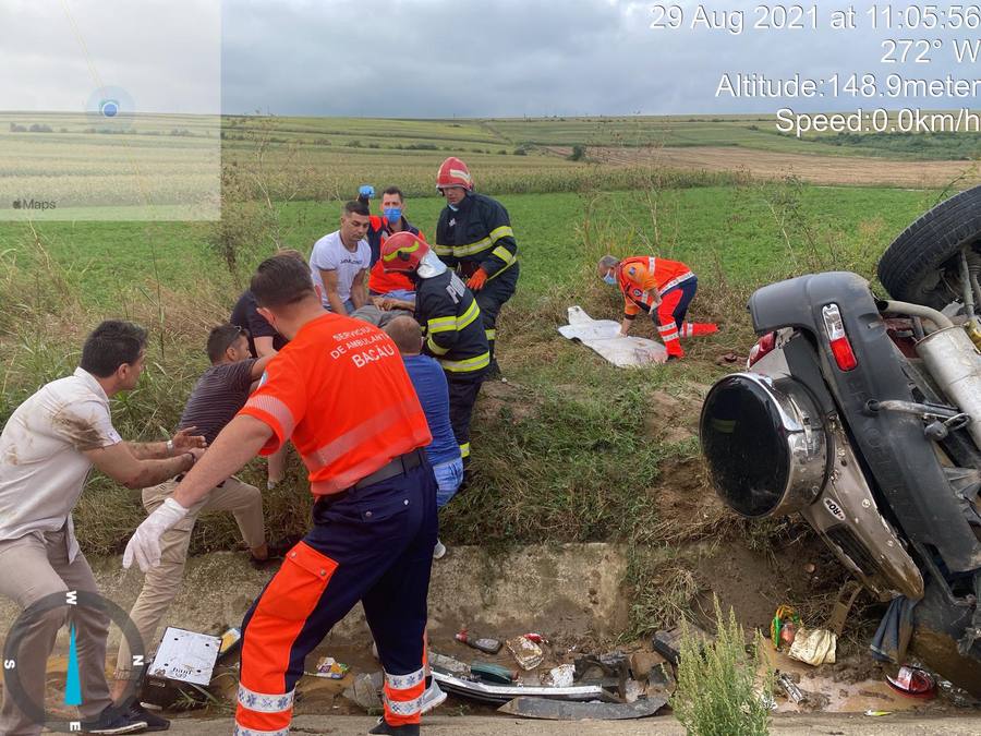 În urma accidentului a rezultat o singură victima conștientă (persoana era iesita din autoturismul răsturnat).