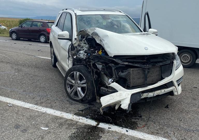 Doua autoturisme s-au tamponat la Cleja, pe E 85, în această dimineață.