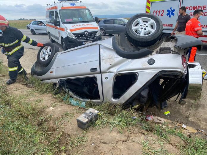 În urma accidentului a rezultat o singură victima conștientă (persoana era iesita din autoturismul răsturnat).