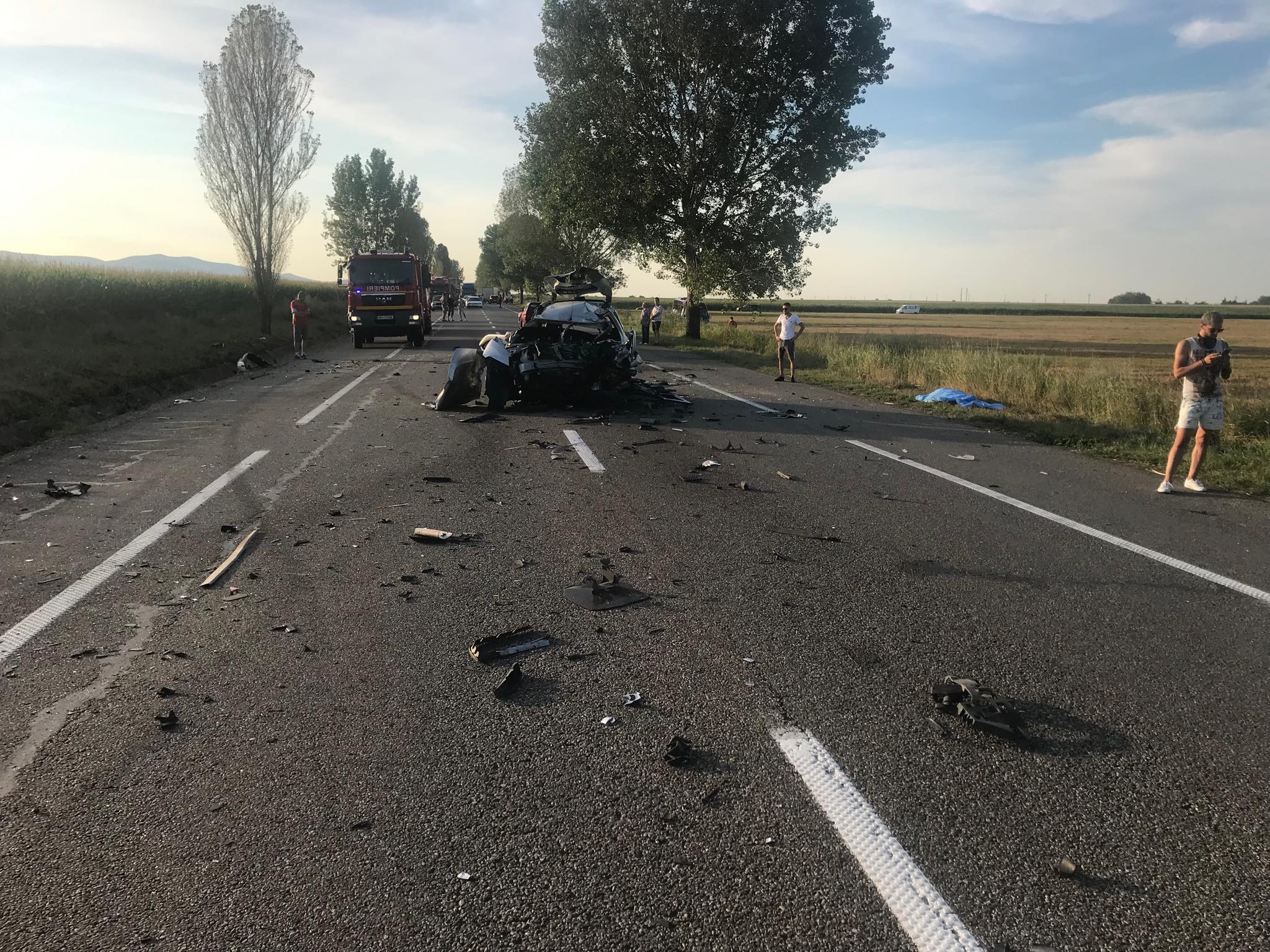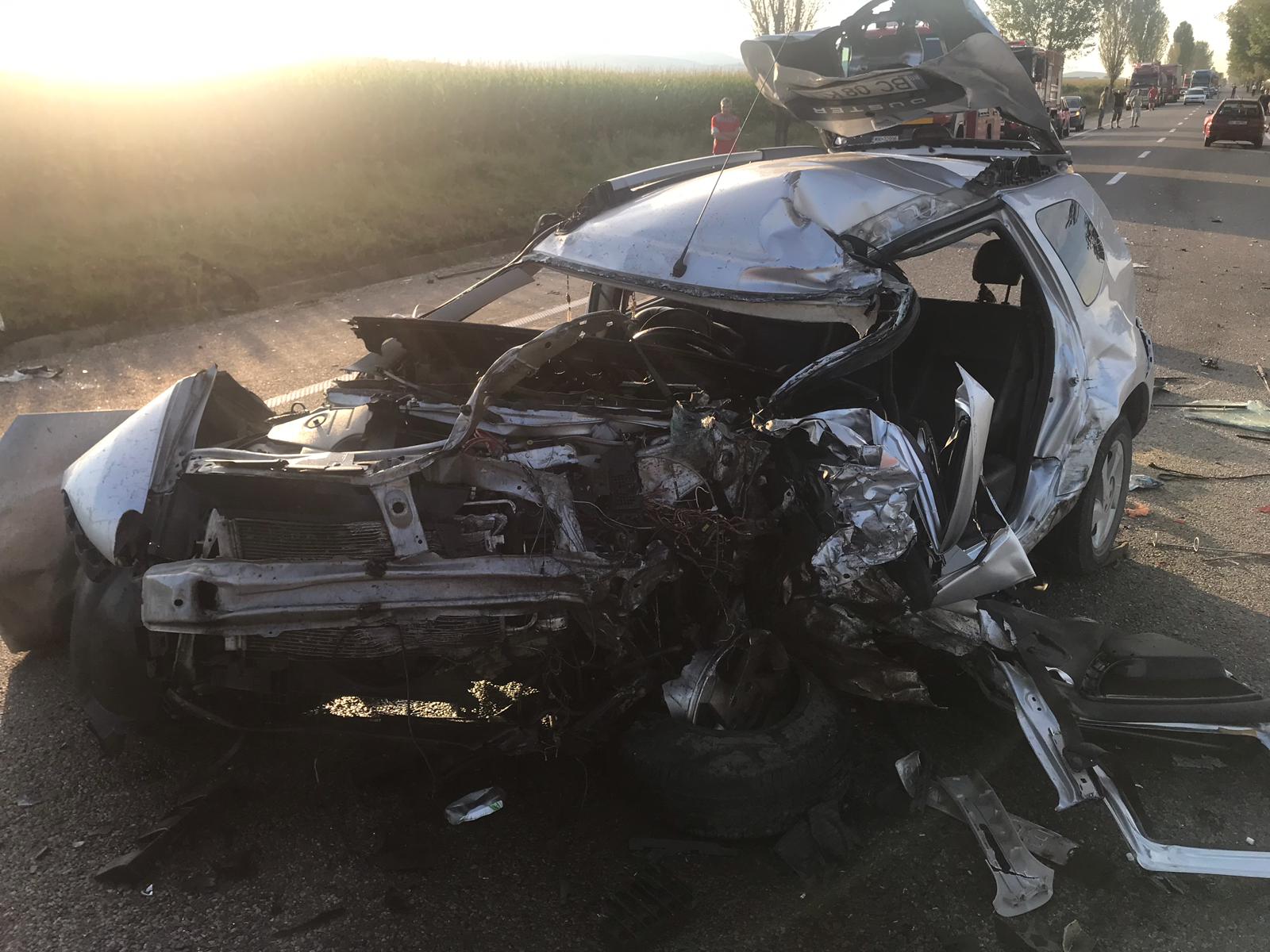 „Un Duster a intrat pe contrasens in depășire, obligând mașina care venea din sens opus să intre pe prima banda. Prima banda era blocată de un TIR și așa s-a întâmplat nenorocirea”, a scris un martor pe Facebook.