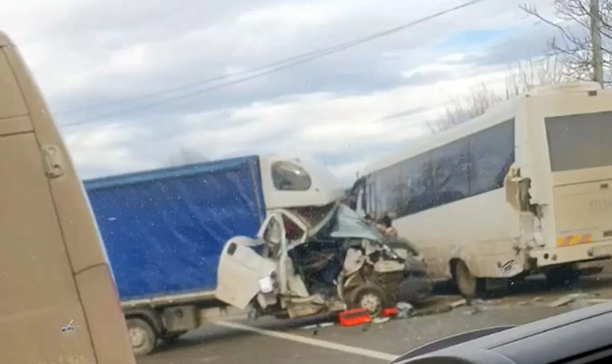 În accident au fost implicate trei vehicule (un autobuz cu 14 călători, oprit în stație în momentul producerii accidentului, o autoutilitară și un autoturism).