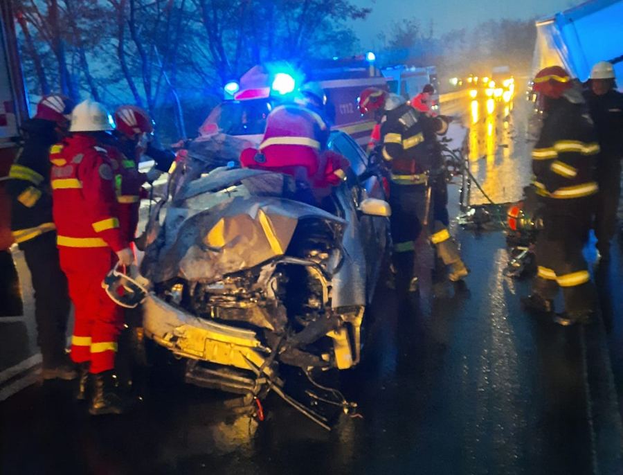 Conform primelor relatări, pompierii au descarcerat trei victime dintr-o mașină.