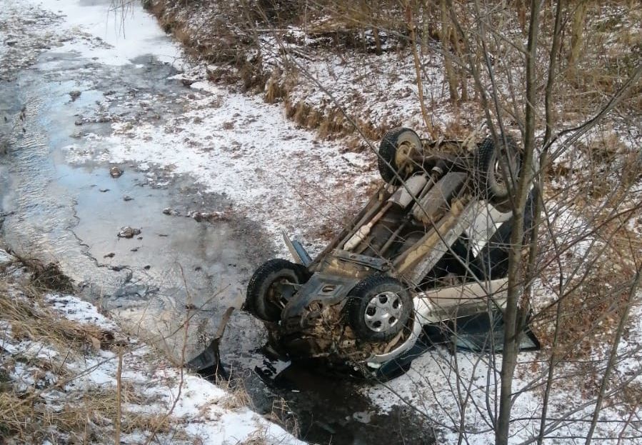 În accident au fost implicate două autoturisme iar unul s-a răsturnat în albia unui pârâu.