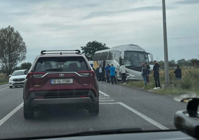 Încă un accident, astăzi, pe E 85, în județul Bacău. Un autocar și un microbuz s-au tamponat și au ajuns în șanț.