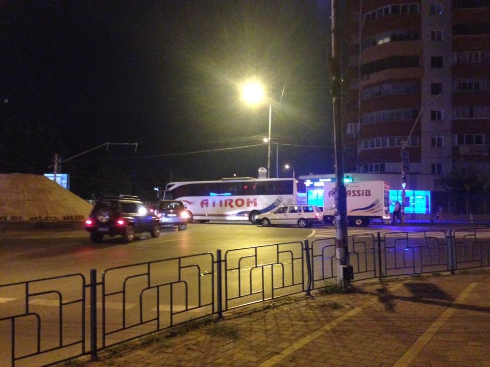 Sensul giratoriu amenajat in intersectia de la Colegiul Economic din Bacau a mai facut o victima vineri noapte, dupa ce un autocar cu remorca a acrosat un autoturism.