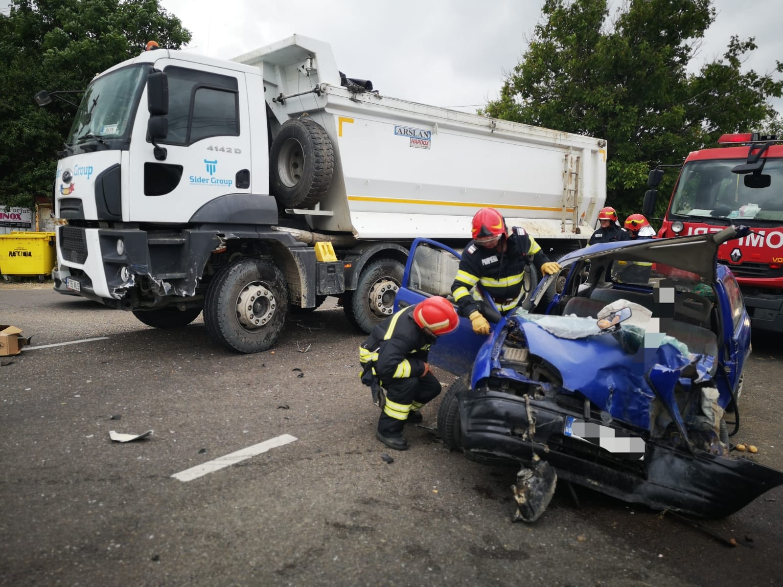 Șoferul rămăsese încarcerat în mașină și a fost scos de echipajele ISU.