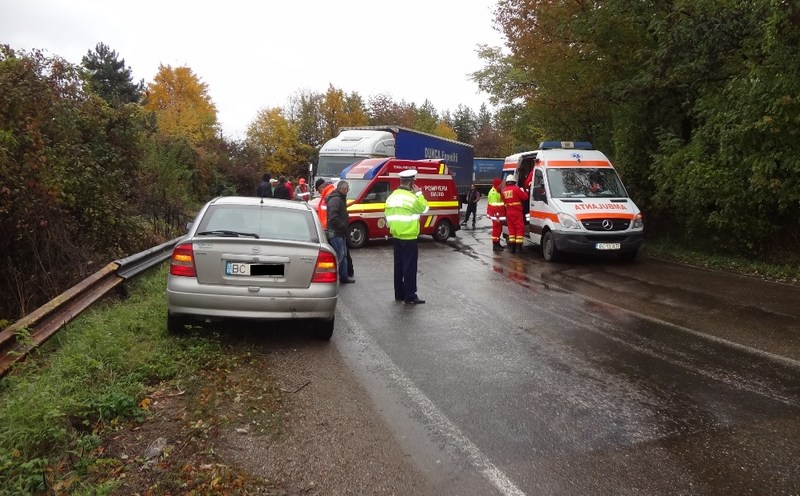 In urma impactului, soferul de 57 de ani a fost ranit si a fost transportat la Spitalul Judetean de Urgenta Bacau pentru ingrijiri medicale, masina sa fiind serios avariata.