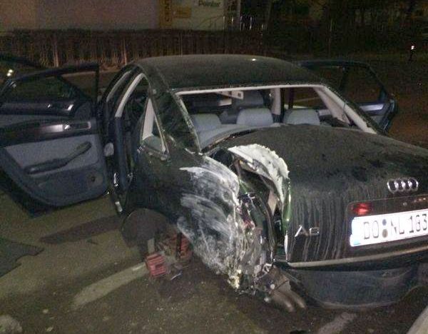 Conform politistilor, o masina condusa de Mihai R., 29 de ani, care venea de pe Neagoe Voda, nu a acordat prioritate unui autoturism condus de Marius R., 21 de ani. In urma impactului, masina a lovit un copac si a ricosat, apoi, in strada avariind inca sapte autoturisme.