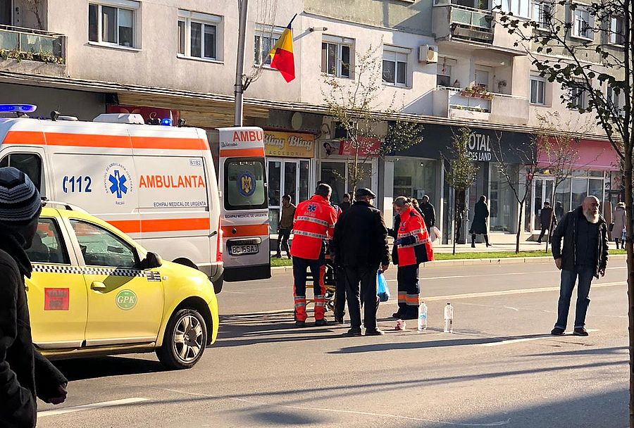O persoana a fost lovită de un autoturism chiar pe trecerea de pietoni din fața Primăriei Bacău.