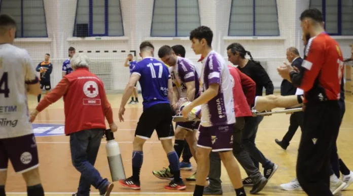 Un jucător a fost luat cu targa și a ajuns la spital după ce s-a lovit cu capul de mantinela care delimitează terenul.