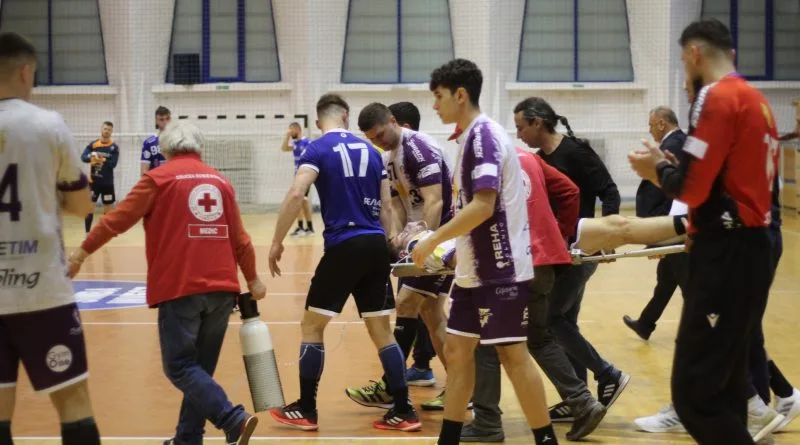 Arbitrul Ninel Costache a cerut intervenția imediată a echipei de urgență, care i-a acordat handbalistului bănățean îngrijiri timp de mai multe minute.