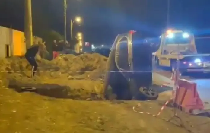 Groapa a fost săpată în cadrul lucrărilor la rețeaua de apă și canalizare, iar locul era corespunzător marcat cu indicatoare și benzi de avertizare. Cu toate acestea, șoferul nu a remarcat semnalizarea și a ajuns cu mașina în groapă.