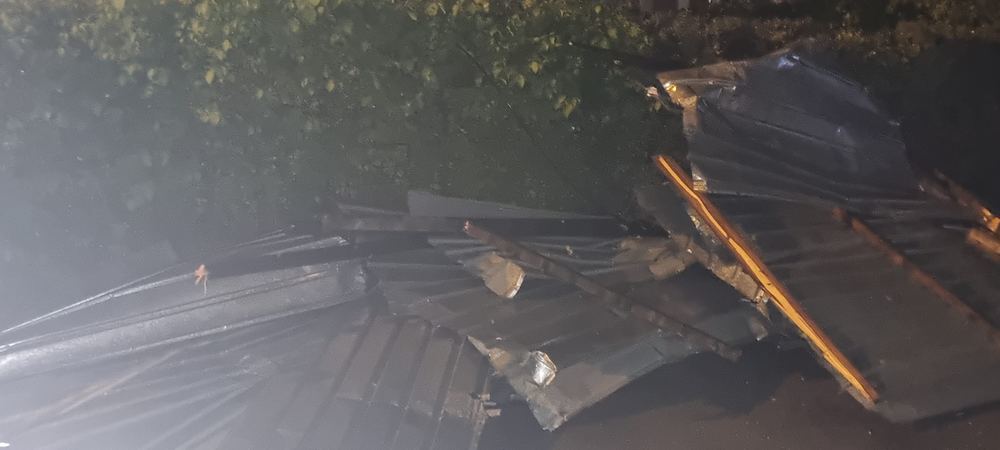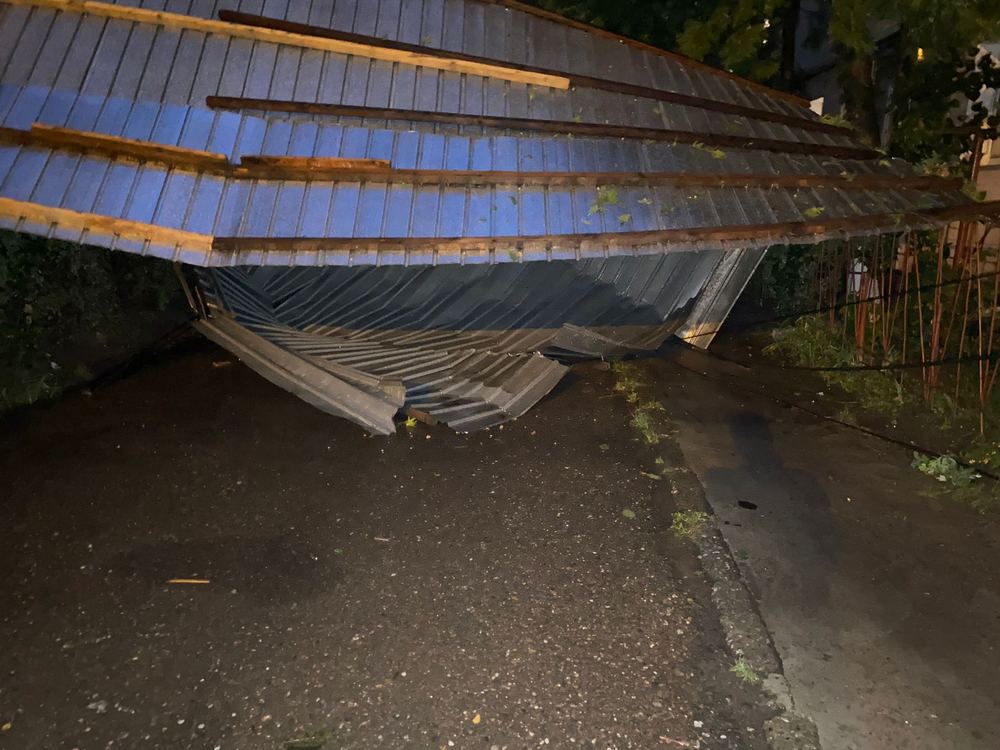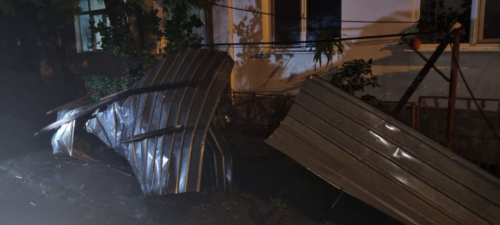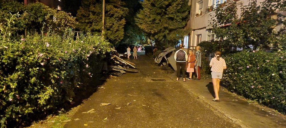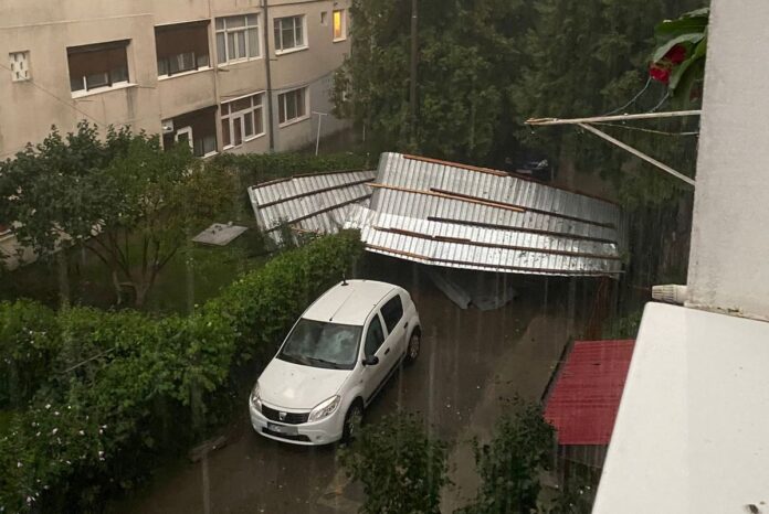 Furtuna care s-a abătut în această seara peste Bacău a luat pe sus acoperișul unui bloc de pe strada Alecu Russo și l-a aruncat la pamânt. În cadere, elemente ale acoperișului au avariat un autoturism.
