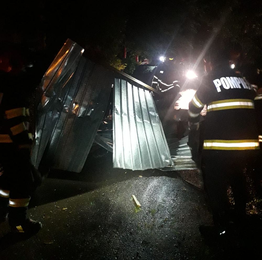 Pompierii au intervenit pentru a degaja resturile acoperișului.