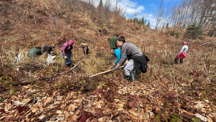 Ajunși la locul de plantat, voluntarii au fost întâmpinați de personalul Ocolului Silvic Comănești care au oferit toate informațiile despre specificul zonei, au efectuat instruirea privind tehnica executării lucrărilor de împădurire în zona de munte și au scos de la ghețărie legăturile cu puieți de molid și brad.