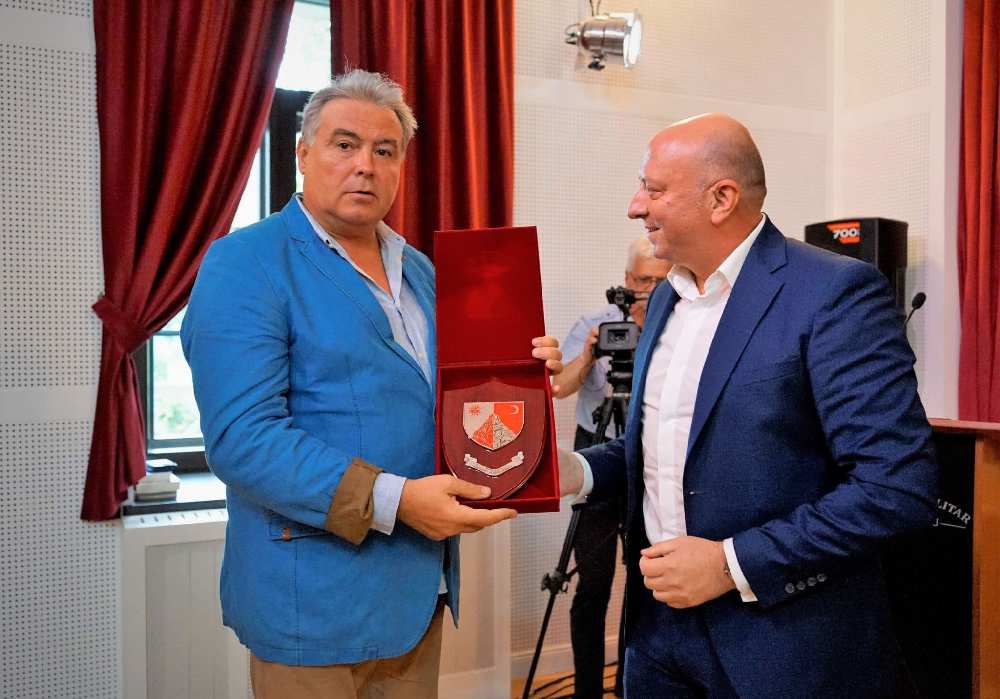 Ca semn de prețuire, dl. prof. univ. Adrian Cioroianu a primit stema județului Bacău din partea președintelui CJ pentru contribuția sa și pentru onoarea acordată prin prezența sa la această sărbătoare a bibliotecii.