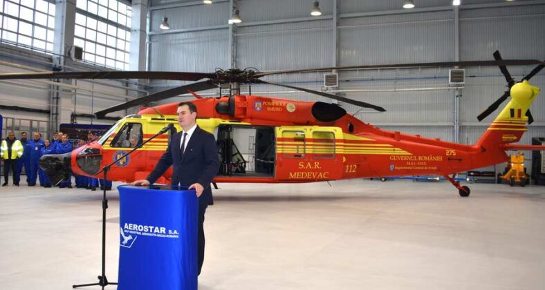 La compania Aerostar, din Bacău, a avut loc, joi, 18 ianuarie, ceremonia de inaugurare a primului Centrui Autorizat de Mentenanță (reparații și revizie – MRO) pentru elicoptere americane S-70 BLACK HAWK®, fabricate de compania Sikorsky (parte a grupului Lockheed Martin). Centrul de Mentenanță este autorizat atât de producătorul elicopterelor, cât și de Autoritatea Aeronautică Militară Națională.
