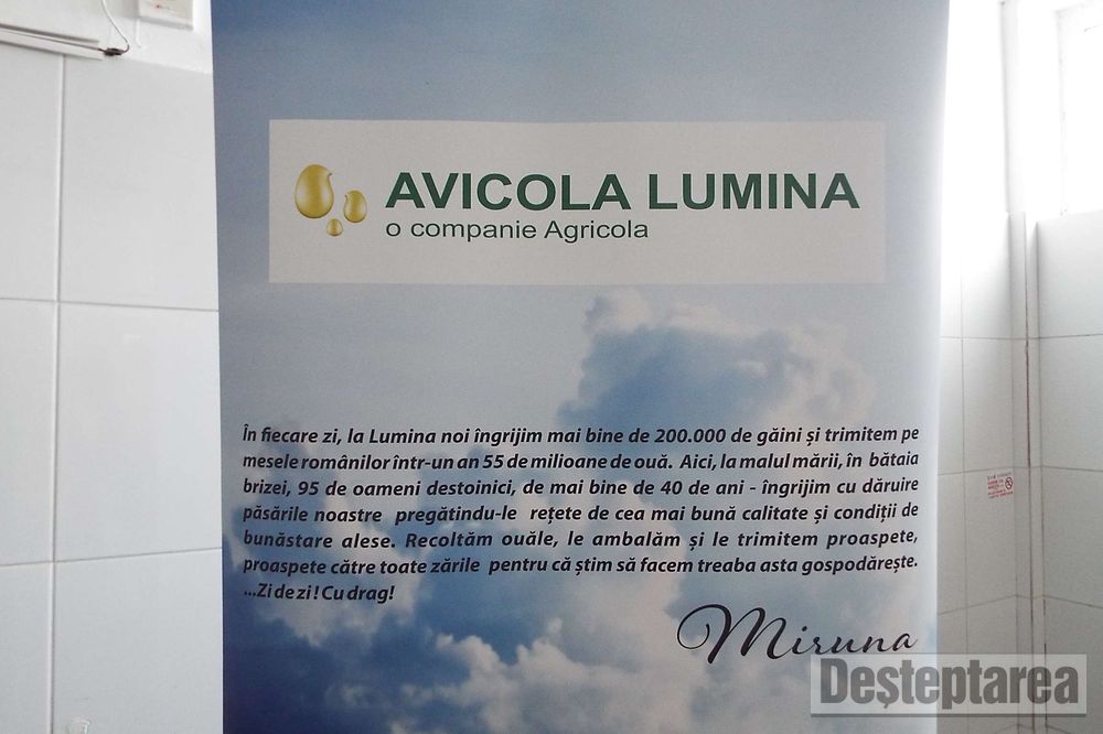 Societatea Avicola Lumina, din comuna Lumina (Constanța), companie a Grupului Agricola Bacău, a lansat miercuri, 18 octombrie, două tipuri de ouă, unul dintre ele în premieră la nivel european: Ouăle Ochioase, îmbogățite natural cu luteină, pentru susținerea sănătății ochilor, și Ouăle Inimoase, îmbogățite natural cu Omega 3, benefice pentru susținerea sănătății inimii.