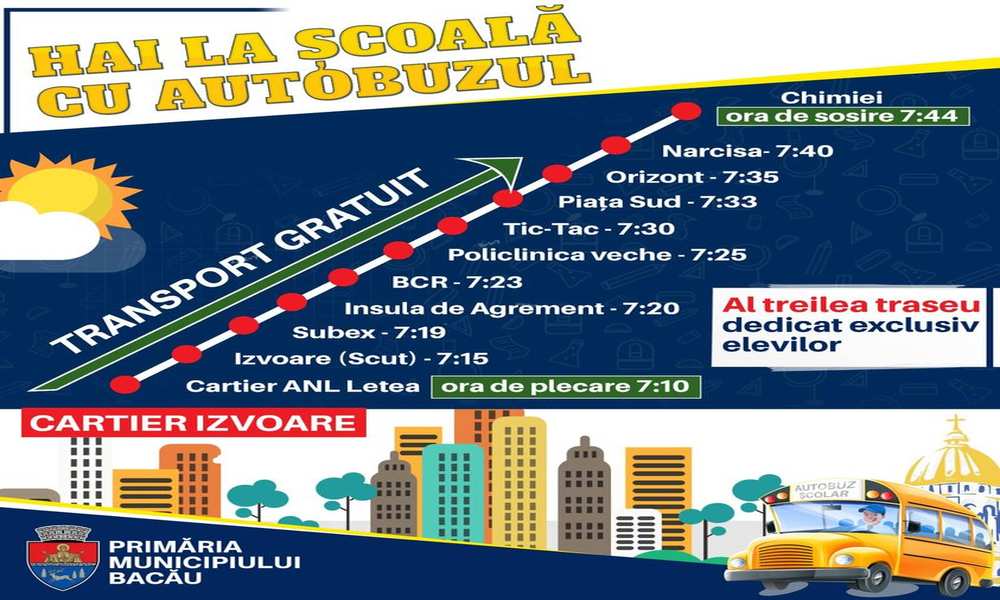 Ajustările în traseul autobuzului au fost implementate în urma analizei feedback-ului primit din partea comunității și au ca scop asigurarea unei experiențe de călătorie cât mai confortabile pentru elevi.