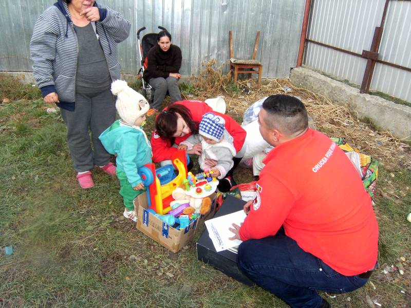 Echipa Crucii Rosii Bacau a fost miercuri, 18.11.2015, la fata locului, cu ajutoare de prima necesitate – alimente (zahar, faina, ulei, cartofi, orez, conserve, paste fainoase, biscuiti, etc) produse de igiena, hainute, jucarii, vesela, perne, paturi, pilote.