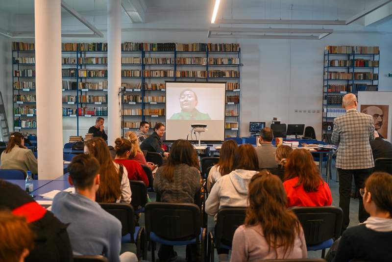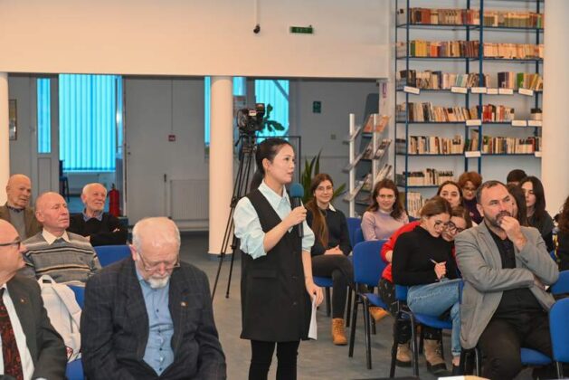 A treia coordonată, Univers spiritual, a aureolat debutul universitarei Cai Qing (China), autoarea unui volum de poezii şi eseuri, „Meridianele timpului” (Editura Alma Mater a Universităţii „Vasile Alecsandri” din Bacău). A participat Constantin Lupeanu (traducătorul volumului), fost ambasador al României în Republica Populară Chineză şi director al Institutului Cultural Român din Beijing. Online, autoarea a dialogat cu cei prezenţi, între care masteranda Delia-Raisa Poede, beneficiară a bursei „Yin Yuguo”, şi Liu Yun, profesoară de limba chineză la Facultatea de Litere, care a dat citire poeziei „Hora Unirii”, de Vasile Alecsandri, în traducerea lui Cai Qing.