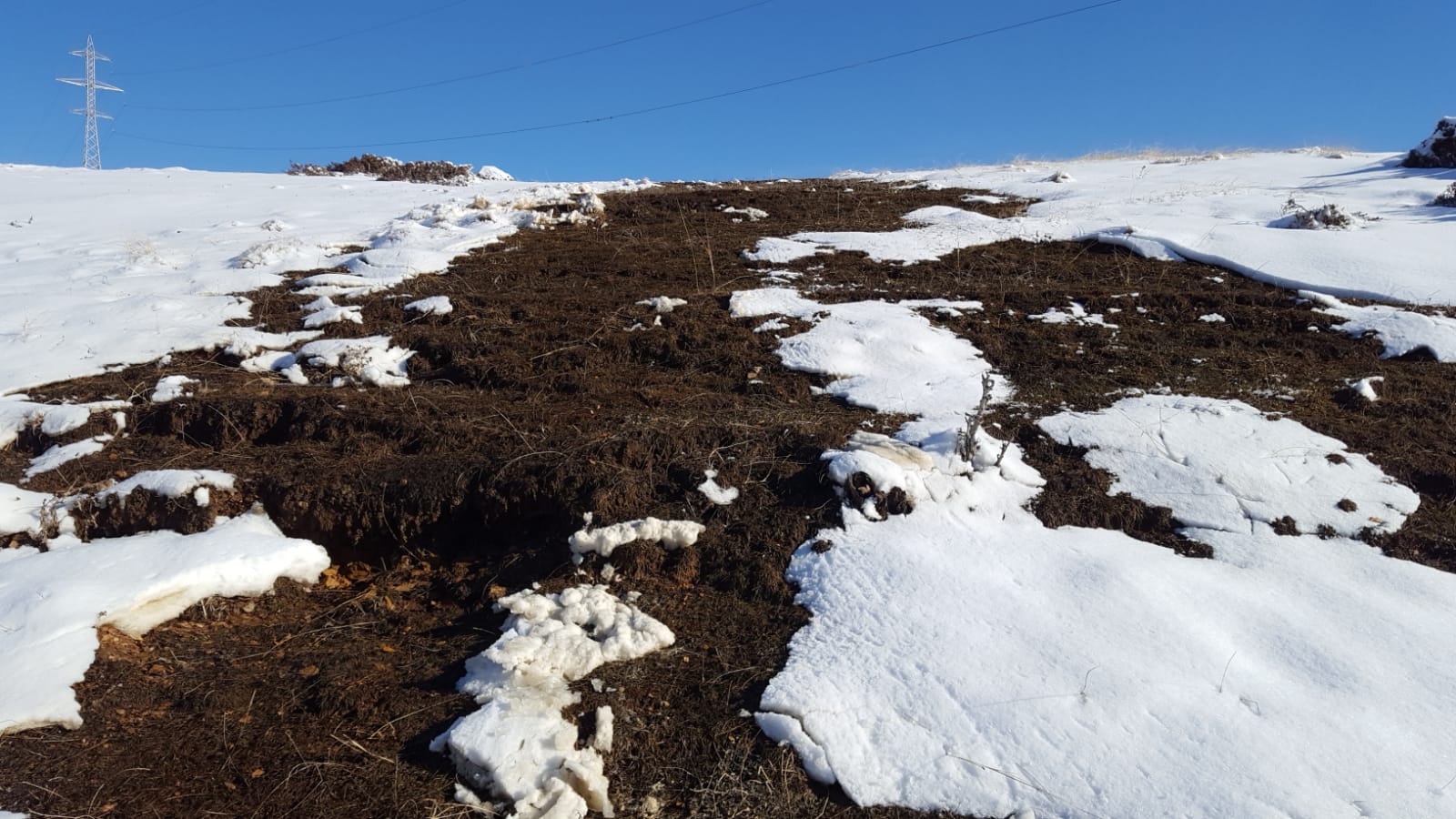 În fotografiile făcute la fața locului nu se mai vede apă curgând, ci numai făgașul prin care a curs deja apa și a topit stratul de zăpadă, pentru că s-a oprit alimentarea cu apă a conductei după ce operatorii au văzut că a scăzut presiunea în urma avariei.