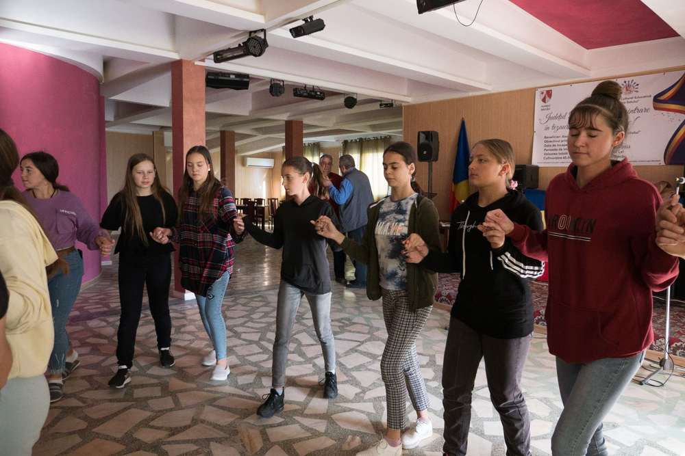 În proiectul mai larg, care a început pe 12 septembrie și care nu cuprinde doar dansul și cântecele, numărul celor incluși este de 40. Poate că în titlul de mai sus cuvântul „european„ ar avea un sens peiorativ, dar un om cu identitate națională puternică și purtător al unor tradiții originale valoroase este un european de calitate, stimat oriunde pe continent. În timp ce un om care are doar învățătura tembelizorului și a internetului este un deculturalizat folosit de unul sau altul ca un obiect de inventar și tratat, în cel mai bun caz, cu un respect minimal, pur formal. Ei bine, ar trebui să îi evidențiem pe cei care au contribuit la această updatare (folosim acest neologism, doar suntem și noi în trend, nu?) a tinerilor incluși în proiect: Ioachim Dămoc, președintele Asociației Cultural-Educative „Vatra Satului” – în calitate de realizator al proiectului, și prof. Mitică Pricopie, fondator al Ansamblului „Ciobănașul”, coregraf de dans popular și soldat vechi în tranșeele folclorului românesc. Plus alte cadre didactice, care au fost trup și suflet alături de tineri.