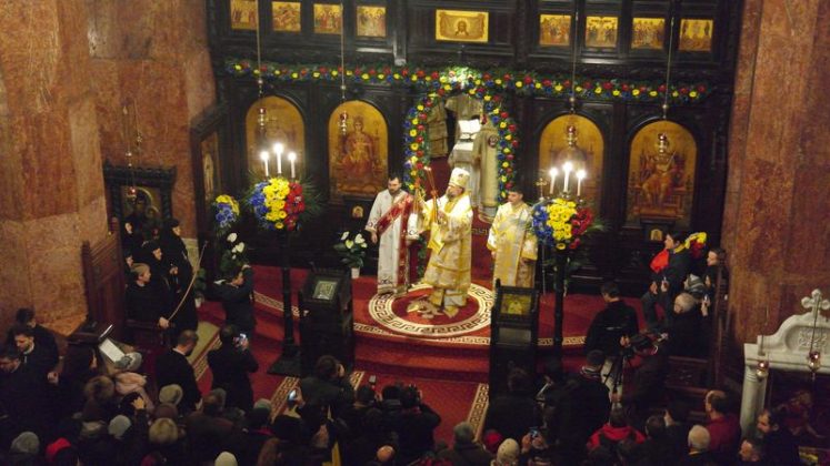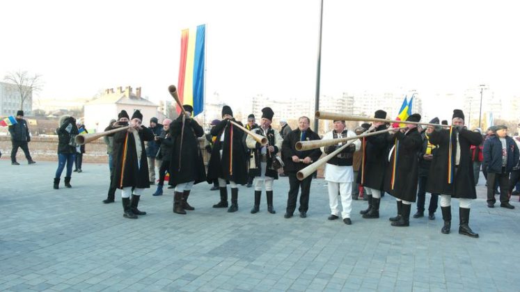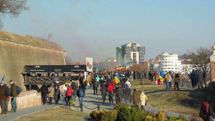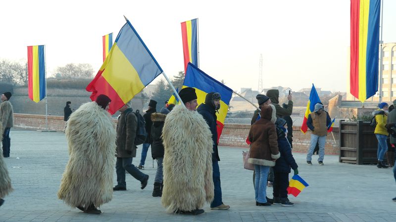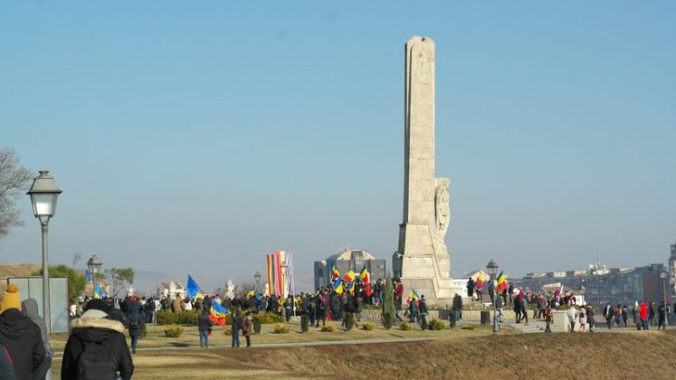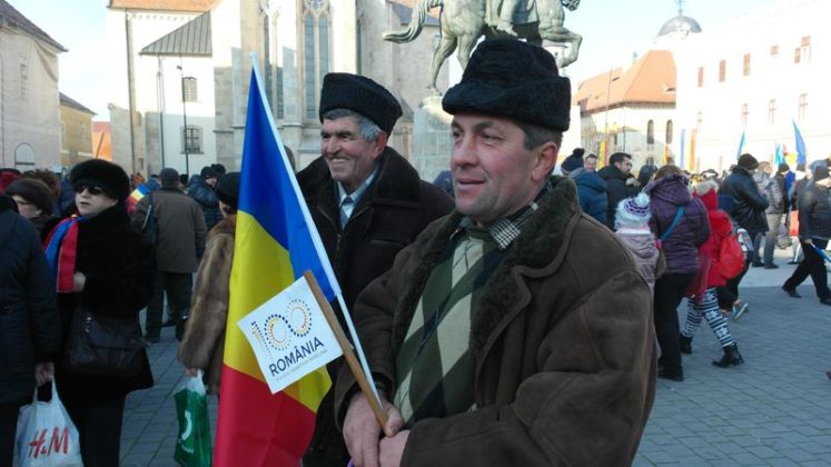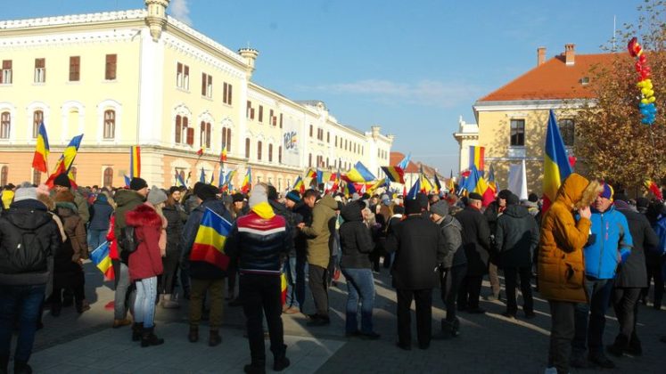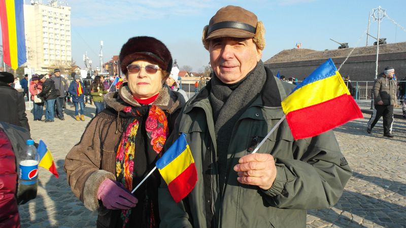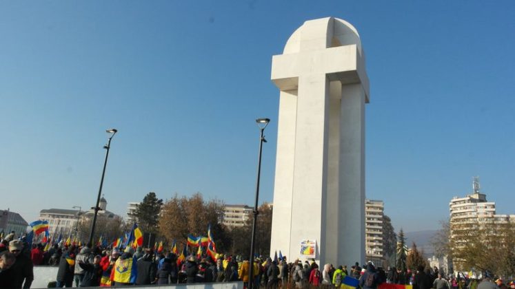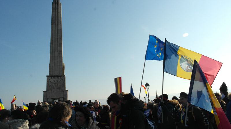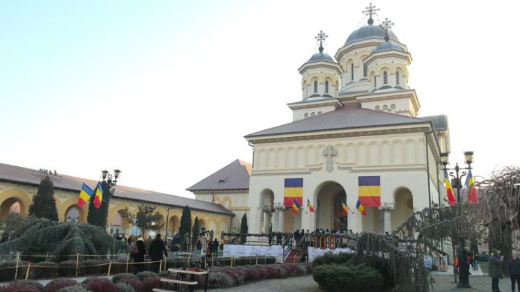 Când am intrat, la ora 7.00, Catedrala era deja neîncăpătoare. Două coruri, unul de preoți și unul al jandarmilor, acompaniau slujba. De la ora 10.00 a urmat un Te Deum, în curtea Arhiepiscopiei care a devenit și ea neîncăpătoare. Oameni cu drapele tricolore, îmbrăcați în costume populare, cu pancarte cu numele localităților din care proveneau împânziseră locul. Și era un ger cumplit: minus 11 grade, în ciuda soarelui cu dinți care te păcălea.