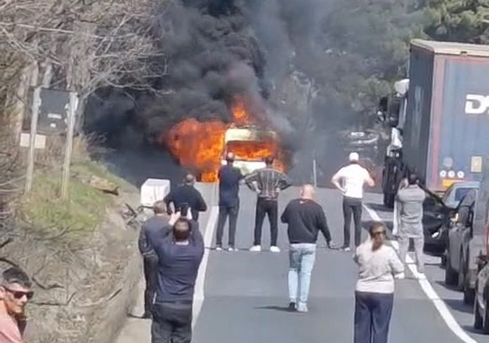 STRUNGA, Romania – An ambulance from Bacău County caught fire while driving on a national highway in eastern Romania on Thursday, but the medical crew managed to escape safely, authorities said.