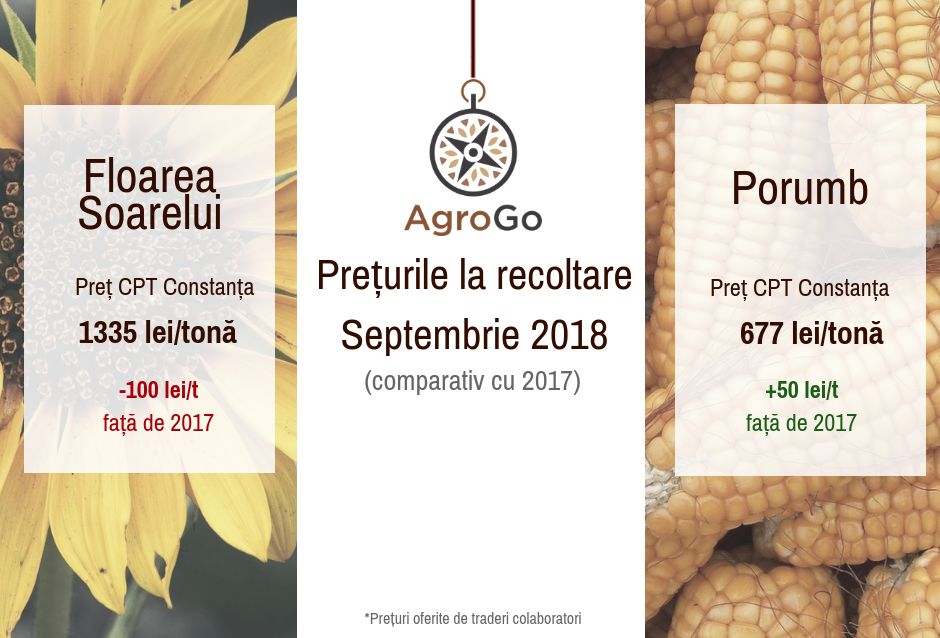 Suntem in plină campanie de toamnă, cu floarea soarelui aproape recoltată iar porumbul în curs de recoltare. Dat fiind faptul că multe tranzacții de vânzare se întampla chiar la recoltare, merita să studiem puțin evoluția prețurilor celor două produse: