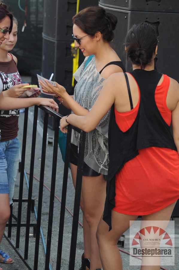 Artista a venit la repetitiile de la Romanian Top Hits extrem de degajata. Insotita de dansatoarele sale, Andra a dat autografe, a vorbit cu fanii si a oferit, apoi, un show incendiar care ar fi iesit mult mai bine daca nu ar fi fost unele probleme extrem de deranjante cu sunetul.