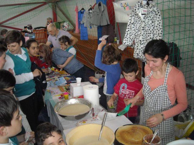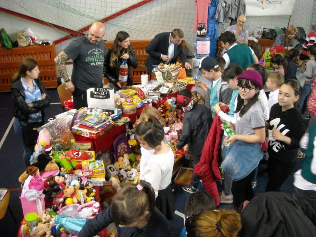 S-a vândut de la mere trase în zahăr, prăjituri, jucării, îmbrăcăminte și încălțăminte, cărți, tablouri, diverse jocuri etc. La unul din standuri am descoperit familia Ciofu, formată din bunic, tătic și o elevă din clasa inimoșilor.