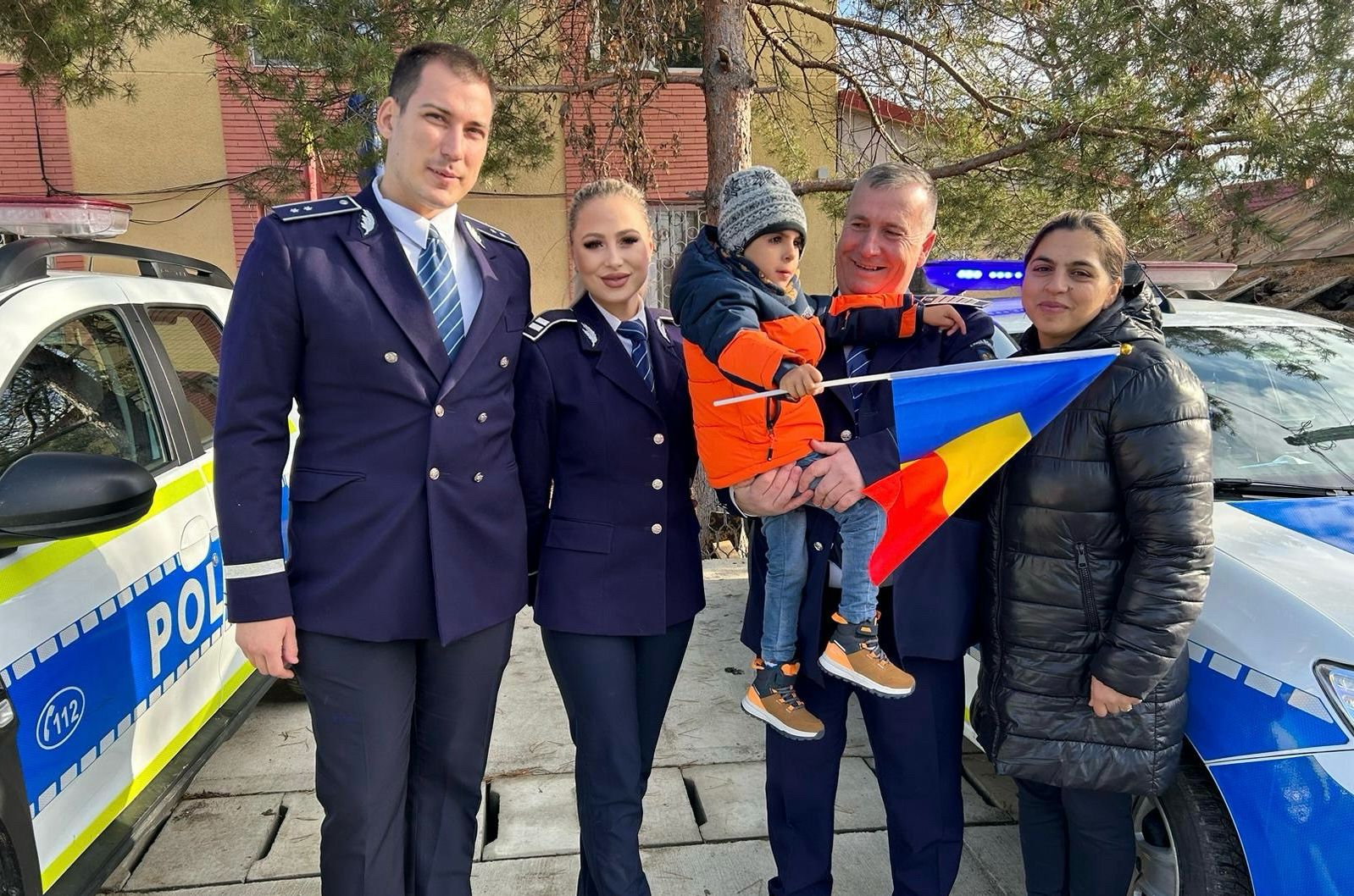 Încântarea băiețelului a fost greu de exprimat în cuvinte. Și polițiștii au fost impresionați de reacția lui, cu atât mai mult cu cât, pentru agent șef principal Ursoiu Ciprian, astăzi a fost ultima zi în sprijinul comunității, de mâine fiind pensionar, după 28 de ani de activitate și rezultate deosebite.