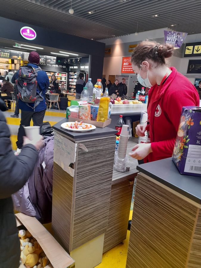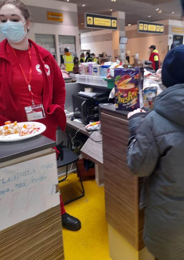 Cetățenii ucraineni care ajung în țară primesc ceai cald, cafea, mâncare, produse igienice, pături, produse pentru copii (scutece, lapte praf, hrana pentru copii).