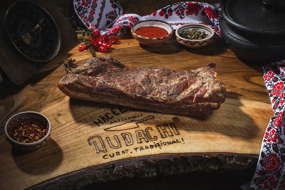 -Unul din obiectivele mele, pe care le-am avut de prin 2017, a fost să am propria mea carmangerie, care, cu ajutorul lui Dumnezeu am reușit să o fac în 2020. Este vorba de carmangeria Dudachi, un vis împlinit, care are un punct de desfacere chiar aici, pe terasa Valhalla. Carmangeria este la Mărgineni, o unitate faină, cu potențial foarte mare unde facem produse foarte curate. Sunt naturale 100%. Doar sare, piper, condiment, usturoi, boia, chimen, enibahar și atât. Eu lucrez acolo împreună cu două angajate, iar carnea provine de la abatoare certificate și verificate sanitar-veterinar. Eu doar o procesez. Produsele Dudachi au prins foarte bine, cei care le-au încercat pot să zic că i-am securizat, vin frecvent, pentru că au găsit aici gustul de altă data. Dacă vorbeam de planuri de viitor, aș putea spune că îmi doresc să deschid un magazin în oraș, care practic să fie o altfel de carmangerie față de tot ce există acum.
