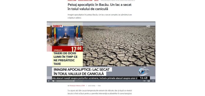 „Peisaj apocaliptic în Bacău. Un lac a secat în toiul valului de caniculă”, titrează Antena 3 CNN care mai afirma ca zeci de mii de români ar putea rămâne fără apă dacă barajul de la Dărmănești ar seca.