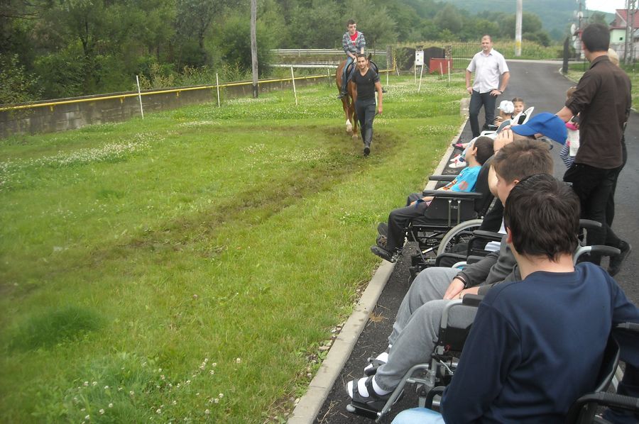 Plus ca mediul de aici este mirific, este liniste, e in mijlocul naturii, cu aer curat, paduri in stânga, paduri in dreapta”, sopteste Radu Mihai Cosmin, angajat al CSE Decebal. Asezati la rând, unii in scaunele cu rotile, altii in picioare, copiii asteapta, cu inimile spargându-le piepturile mici la gândul ca vor urma macar sa atinga, frumosul animal. Dalmatian, calul de scoala (dintr-o rasa notorie ungureasca) este preferatul copiilor.