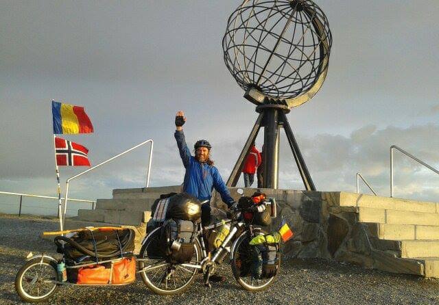 „Am avut la mine un costum popular, stergare si alte lucruri traditionale românesti. Mergeam mai intâi la ambasade, de unde luam reviste, brosuri cu informatii despre tara noastra si le imparteam pe unde ajungeam. Am promovat România la pas, cum s-ar spune”, a mai adaugat biciclistul. In tarile nordice vremea nu i-a fost prielnica. A prins ninsori mari, ploi reci care nu se mai terminau si vânt puternic.