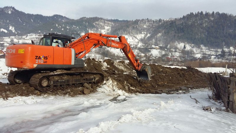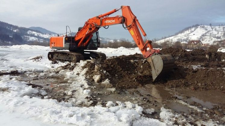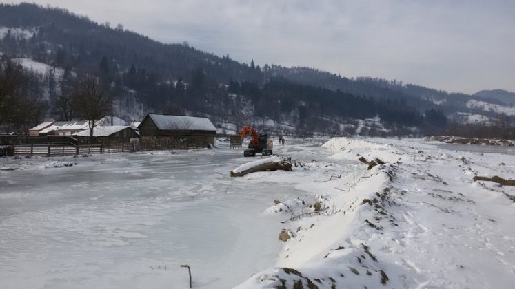 Ulterior, cu ajutorul unui excavator și al unui buldozer, se execută lucrări de reprofilare a albiei și de deblocare a ghețurilor, pentru a se asigura secțiunea de scurgere a apei și a se preveni inundarea zonei locuite.