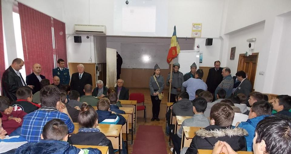 In acelasi cadru, col. (r) Costica Cojocaru le-a vorbit elevilor despre drapelul de lupta al Regimentului 3 Infanterie si uniformele militare din anul 1918, iar trei astfel de exemplare au fost purtate de doi baieti si o fata, elevi ai liceului.