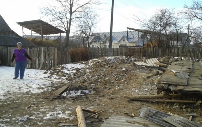 Într-una din zilele trecute, Maria a vrut să mai recupereze o parte din materialele din vechea locuinţă, dar, la un moment dat, când a tras de o bucată de lemn tavanul s-a desprins şi a căzut peste ea.