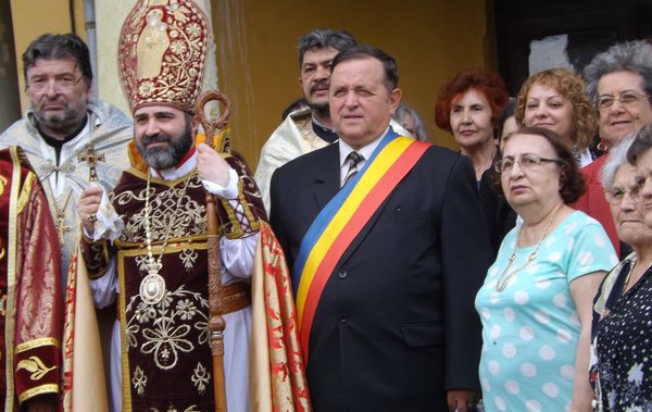 La câteva luni de când in orasul–statiune de la poalele Magurii au poposit oficiali ai Ambasadei Armeniei in tara noastra, zilele trecute la Târgu Ocna au fost prezenti peste o suta de armeni din mai multe orase ale tarii, care au participat la doua evenimente cultural–spirituale de profunzime pentru aceasta comunitate. In prezenta primarului orasului Tg. Ocna, Stefan Silochi, a consilierului la Secretariatul de Stat pentru Culte, Marius Marian Solea, in seara zilei de 6 iulie la Primaria Tg. Ocna a fost prezentat volumul “Armenia – o geografie sacra”, ce il are ca autor pe profesorul sucevean Adrian Popovici. Aceasta carte este una captivanta deoarece in paginile sale se gasesc dialoguri intre personaje, care fac analogii intre istoria românilor si a armenilor. Duminica 7 iulie, in prezenta Arhiepiscopului Bisericii Armene, Datev Hagopian, la Biserica “Sfânta Maria” din Târgu Ocna (care este cel mai vechi momunent armean existent pe teritoriul judetului Bacau), a fost savârsita slujba religioasa a hramului bisericii. Cu prilejul acestui eveniment, armeni din Bucuresti, Iasi, Bacau, Braila, Suceava, Focsani, Gherla si Târgu Ocna s-au bucurat de o frumoasa slujba religioasa si pentru câteva ore s-au minunat de cadrul natural in care se afla biserica, ce adaposteste icoane si obiecte de cult de peste doua sute de ani. Intr-un emotionant cuvânt de invatatura, Datev Hagopian, Arhiepiscopul Bisericii Armene, a evidentiat nu numai trecerea a 1.000 de ani de când armenii sunt prezenti pe meleagurile românesti, dar si dorinta de a pastra religia si frumusetile acestei tari. Cucernicul parinte armean si-a exprimat si speranta ca biserica – monument de la Târgu Ocna sa fie restauranta, ea putând deveni un punct de atractie pentru armenii din toata lumea.