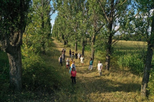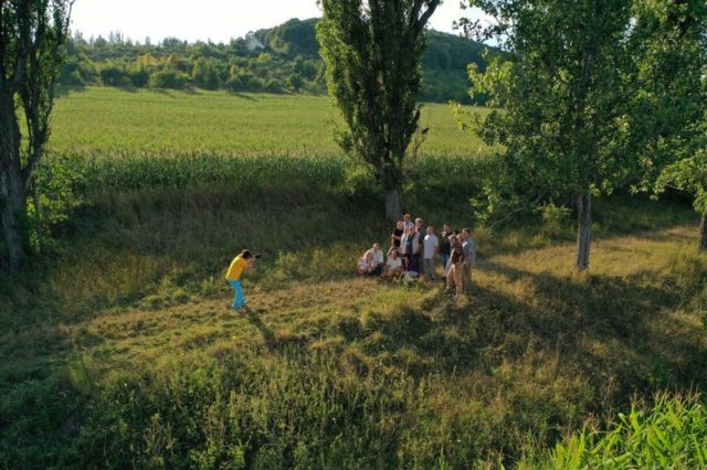 Mai sus, exact în capătul și mijlocul câmpului de porumb ce a fost, odată, pistă pentru avionul legendarului Bîzu Cantacuzino, artista Sara Rodriguez din Spania așază pe pânzele ei de la Tescani ilustrații de povești, într-o atmosferă „la țară, la bunica”. La bunica din România, desigur. Din Spania, nu bunica, ci tatăl Sarei, pictorul Pablo Rodriguez Guy, dublu participant la întâlnirile de la Tescani, i-a împărtășit tinerei creatoare dorința de a fi parte în acest proiect artistic din România.